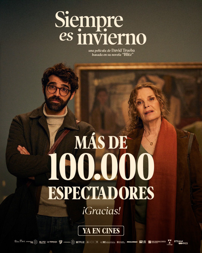 ‘Siempre es invierno’, la película dirigida por David Trueba y protagonizada por David Verdaguer, Isabelle Renauld y Amaia Salamanca, ha superado los 100.00 espectadores. Desde su estreno en salas el pasado 7 de noviembre, la película ha llegado a alcanzar el número 1 de la taquilla española, reafirmando la buena recepción tanto de la crítica como del público.